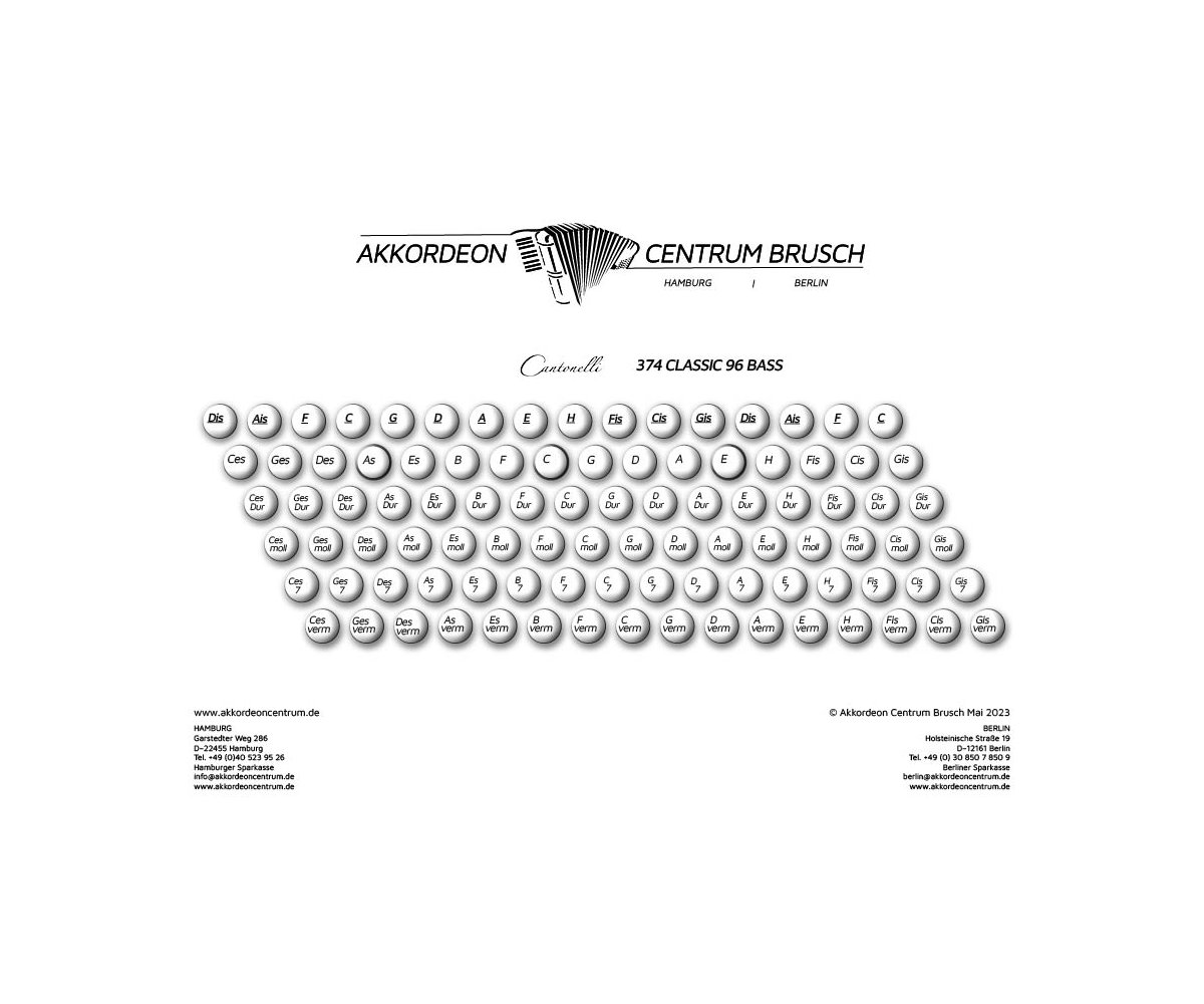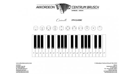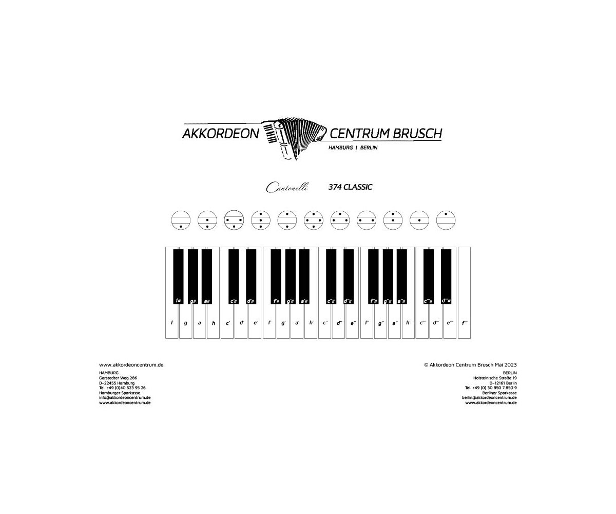Wenn du ein neues Piano-Akkordeon mit leichtgängigen italienischen Mechaniken suchst, dann hast du es mit der Cantonelli 374 Classic gefunden. Inkl. Koffer und Riemen. 2 Jahre Garantie.
