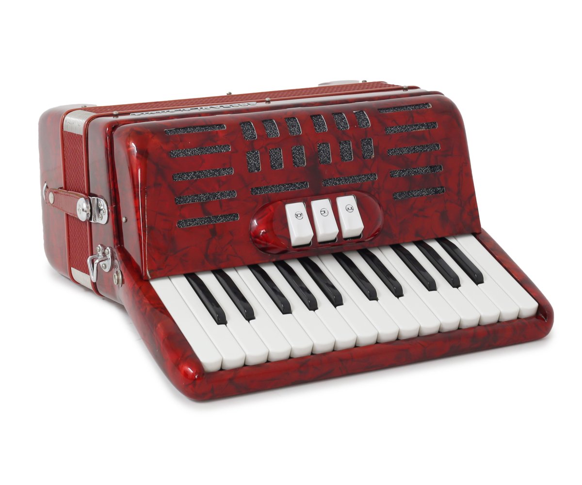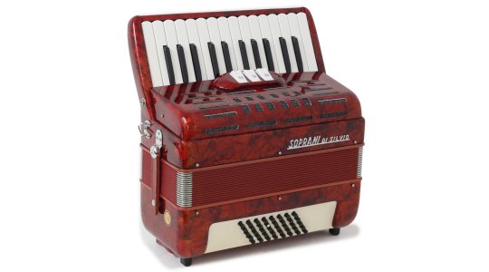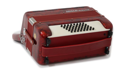 Ein kleines kräftiges Akkordeon aus der SOPRANI Familie. Stimmtechnisch generalüberholt in gutem Zustand mit nur 5,7 kg inklusive Koffer und Riemen!